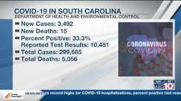 SC sets new high for percent positive in latest COVID-19 update SC sets new high for percent positive in latest COVID-19 update. State officials report 3,492 new cases, 15 additional deaths on Monday. Close.