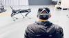| Dry EEG Sensors Control Army Robots A UTS researcher is fitted with a head-mounted AR lens over a blue elastic headband incorporating eight dry graphene EEG sensors at the back of the head. The round, white patch below his left ear is a wet silver on silver chloride sensor used as reference. | |